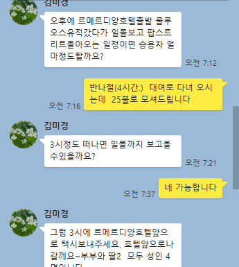 -   반나절 렌트는 23불로 모셔드리며,